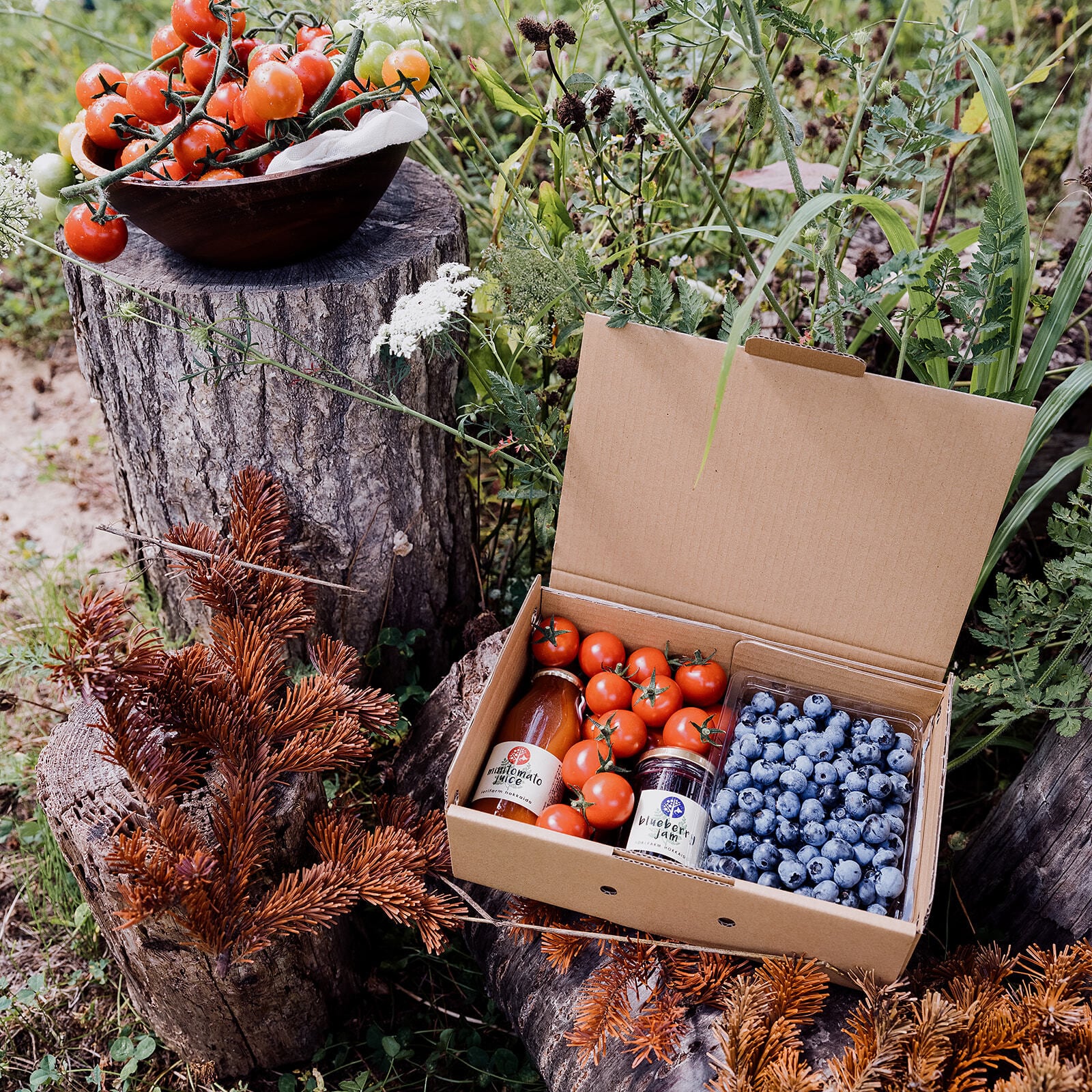 ブルーベリーとミニトマトセット+ ミニトマトジュース100% ブルーベリージャム 通年除草剤化学農薬不使用